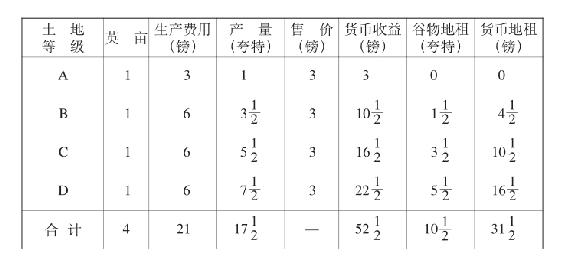 这是B级土地上还没有投入那个只提供1夸特的3(1/2)镑新投资以前的情况。有了这个投资以后,情况如下: