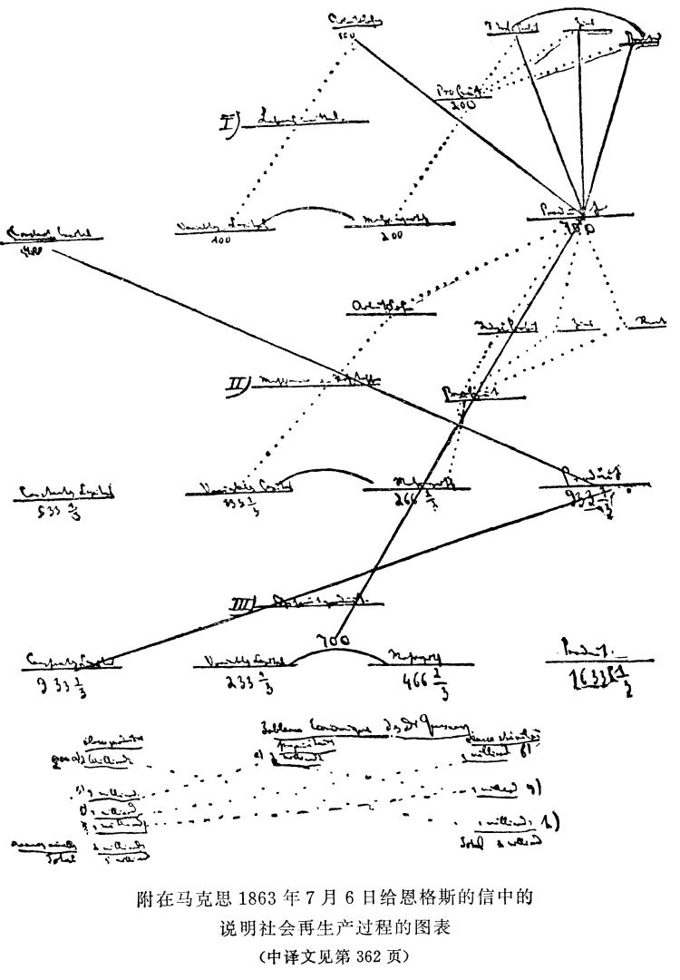 附上一份“经济表”,这是我用来代替魁奈的表342的,天气很热,但是你如果有可能,就仔细看一看,如有意见就告诉我。这个表包括全部再生产过程。