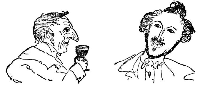刚刚收到你的来信,此刻我正好无事可做,所以就给你写几行。我们的商行有了重大的改进。在过去,刚吃过饭马上就要令人十分反感地坐到办公桌旁,那时是何等的困倦啊;为了革除这种缺点,我们在仓库的凉台上挂了两张漂亮的吊床,午饭后在吊床上抽着雪茄,摇摇晃晃,有时打个盹儿。我相信你会认为这种新的安排是非常合适的。今天上午我也收到罗特的信。在离开了四个月以后,他将于下星期天回到这里。这样,你将知道,一千七百马克的银行券,按百分之一百三十七计算,折合金路易为七百七十六塔勒二十四格罗特。我计算过两遍,准确无误。现附上版画一幅。一个年老的品酒行家,接过一杯酸酒。在他旁边的是卖酸酒给他的推销员。我再给你画一幅这里的年轻人的发型。