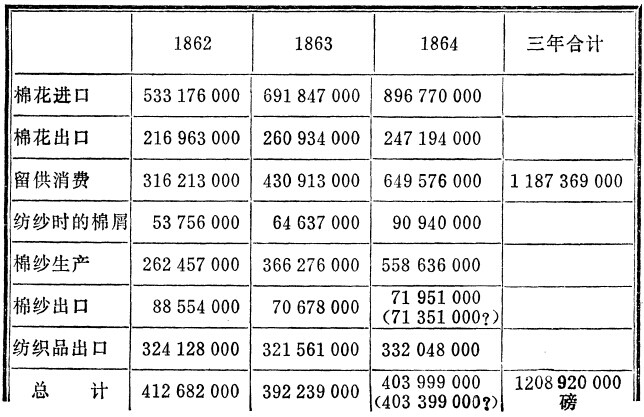 (32) 1860年英国进口1429697450磅子棉,1861年进口1359823120磅。