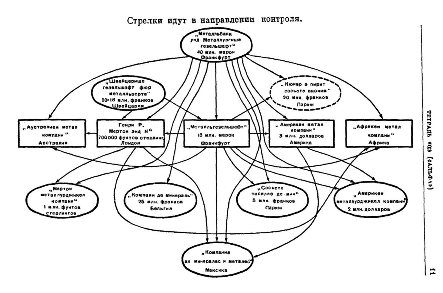 «Франкфуртская торговля металлами, к которой, между прочим, принадлежат еще некоторые другие фирмы, имеющие не малое значение, охватывает, таким образом, своими предприятиями, в особенности предприятиями Мертоновского концерна, фактически весь мир» (с. 122).